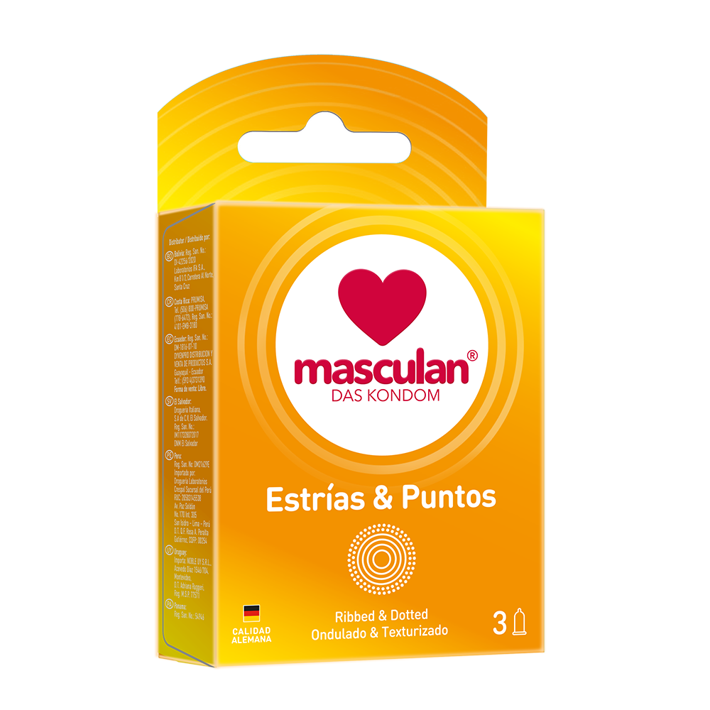 Composición: Preservativo hecho de goma de látex natural, lubricado superficie de relieve punteado y punta estriada